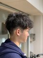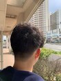 くせ毛を生かしたカットです。2mmからのフェード2ブロック。フロントを長く残し束感が出るようにセニング