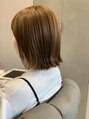 内にも外にもなる切りっぱなしのボブ。お客様の肌の色とも相性のいい透明感のあるアッシュのカラー。マイクロバングで透明感もプラス