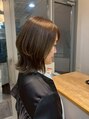 クリスタルカラーで白髪染めでも明るく透明感のあるスタイルに!ペタッとしやすい軟毛なのでレイヤーでふわっと動きをつけました。"