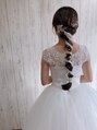 ウエディングフォトウエディングフォト撮影前にヘアメイクメイクはブラウン系のナチュラルメイクヘアセットはセミロングからウィッグでロングにして編みおろしして可愛く仕上げました
