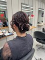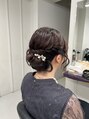 髪の毛の短いお客様で、シニヨン部分にはすき毛をいれています。タイトになりすぎない、ゆるっとカチモリアレンジヘア。