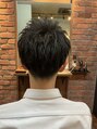ほどよい束感と動きのあるショートスタイル。前髪を軽く立ち上げることで爽やかさと好印象を両立。
