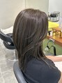 ベースにオリーブグレーのカラー。ハイライトを入れて立体的なヘアースタイルになるようにしています
