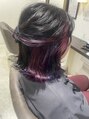 インナーカラーを、紫、ピンク、青を入れました。表面は、暗めなコバルトブルーでどの色にも馴染むようにしました^_^ハーフアップしたら可愛いし、普通にくくるのも可愛いです。