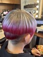 ハイファッションヘアーブリーチWカラーで毛髪改善トリートメントを入れ手触り良く風にサラサラとなびくようにしで刈り上げ部分はバリアートを入れヘアーアレンジを楽しめるスタイルに仕上げました。