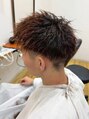 低めに入れたローフェードで首元をすっきり。トップは動きが出る長さを残し、ドライ後にワックスで束感を強調。清潔感と男らしさを両立した万能ショートです。