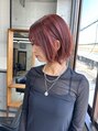 ブリーチなしカラー/赤髪/レッド/外はねボブ