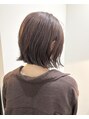 抜け感のあるボブスタイル。癖を活かして表面は少しレイヤーをプラス。ベージュラベンダーカラーが、肌なじみよく透明感を引き立てます。スタイリングは濡らしてオイルを馴染ませて手ぐしで仕上げのみ。こなれ感のある仕上がりに。
