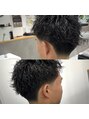ピンパーマとテーパーフェードを組み合わせた大人スパイキー。刈り上げを薄くしないのがポイントです。