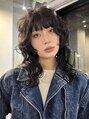 バングとコントラストをつけた、ロングのドライパーマ。重みあるAラインのシルエットが可愛いです!秋冬のファッションにフィットさせます。スタイリングはとても楽です。
