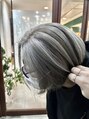グレイヘアが全体の50%のお客さま。表面のみブリーチを使用せずにダブルカラー+イルミナカラーで全体をブルーグレーに。何度も繰り返し染めることで、伸びてきてもグレイヘアと馴染みます。