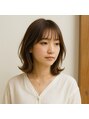 毛先に軽い外ハネをつけたミディアムスタイル。柔らかいレイヤーで動きを出し、顔まわりに軽さをプラス。モカブラウンの自然な艶が上品で、大人女性に似合うナチュラルな印象に。