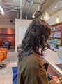 しっかりウェーブのパーマスタイルです!スタイリング剤を揉み込むだけで簡単にセットできます^_^ウェーブパーマ/スパイラルパーマ/ミディアムパーマ/レイヤー/段カット/黒髪/暗めカラー