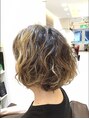 ひし形のレイヤーボブのスタイルにウェーブパーマで動きをプラスしたスタイルです