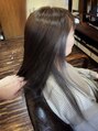 - 根元のカラーは白髪染め、毛先カラー明るいカラーにビビットなピンクを、白髪染めでも色を楽しめるカラー