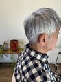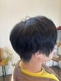 マッシュショートウルフ。クセ毛のお客様。ふくらみやすい髪質なので、毛量調整してコンパクトに、