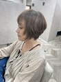 大人ショートレイヤースタイルですお顔まわりとトップにレイヤーをたっぷりいれてふわっと白髪ぼかしに入れたハイライトが映えますねソフトベージュのカラーとピッタリです頭の形がキレイに見える美シルエットを意識してカットしています