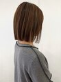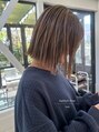 ハイライトの履歴を活かした透明感のあるカラーに♪パツっとラインがお洒落で可愛い切りっぱなしボブです。アイロンでスルー後、オイルを馴染ませてスタイリングするとツヤ感と束感UP!