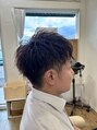 無造作なセットが楽ちんなツイストパーマです。トップの立ち上げがしやすいすたいるです。ボリュームが出にくい方におススメ!