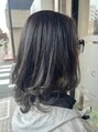 ヘナカラーで染めてます。黒髪にはあまり変化がない為、白黒のコントラストが残りメッシュっぽい仕上がりになります