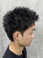 ツーブロックを長め設定する事で段差のない刈り上げスパイキーショートになっています