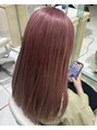 透明感×柔らかさを両立した、ブリーチオンカラー “ミルキーピンク”ベースの抜け具合に合わせて、ピンクベージュを調合♪黄ばみをおさえながら、血色感をプラスすることで  肌が明るく見えるように仕上げています!トリートメントも同時施術でツヤ感UP!