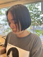 襟足は少し刈り上げ気味のミニボブ。ライトジェルでお仕上げ。パツっとラインがかわいいです。