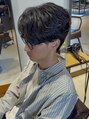 フェザーパーマ+メンズカット(フェザーパーマセンターパートニュアンスパーマニュアンスフェザーパーマ)