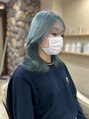 透明感たっぷりのミントブルーカラー。ブリーチベースに柔らかく色味を重ねて、くすみすぎずツヤのある仕上がりに。ワンカール顔まわりレイヤーで軽やかに動くスタイルです!