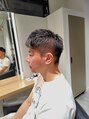 刈り上げスタイルです。地肌にある程度長さを残すあら狩りで仕上げております。トップは長さを残しつつ量を軽めにとっておりますのでスタイリングは簡単かつあげてもおろしでも対応可能です