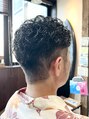 サイドとバックは刈り上げでタイトに締めトップは動きのあるパーマで程よいボリュームと抜け感をプラス。清潔感の中に男らしさと色気を感じる、大人のための洗練スタイル。セット次第で、ビジネスからカジュアルまで幅広く対応できます。