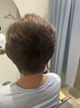 メンテナンスをしながら毛量調整、襟足の軽さを出しトップには丸みを