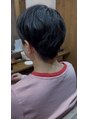 もみあげ、襟足を刈り上げ、丸みが出るようにカットしました。スタイリングも簡単です♪
