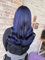 深めネイビーブルージュ&シールエクステ80枚!!秋に少し落ち着かせたいけど透明感も欲しい方に是非お勧めカラー!ボブからエクステもカラーリングして付けて胸下セミロングに仕上げました!