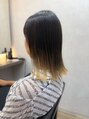 切りっぱなしボブから伸ばしていく時の結べる長さの切りっぱなしボブ。デザインカラーに縮毛矯正を。伸ばしていく方もご相談下さい【立川/ボブ/縮毛矯正/前髪/前髪カット/カット/ストレート/カラー/イルミナカラー/インナーカラー/髪質改善/トリートメント】