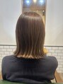 肩に少し付くくらいのミディアムボブで自然に外はね♪カラーは退色を生かしてハイライト風でナチュラルにおしゃれ感を。柔らかくベージュで仕上げました。