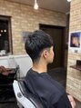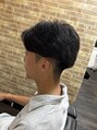 アンダーはスッキリスキンフェードで、トップは後ろに流すスタイルで軽くまとめています!トップとのコントラストでいかつすぎずスッキリとした大人男子にもなれちゃいます♪