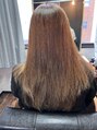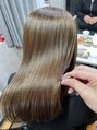 髪質改善トリートメントでツヤを与えながら、シアーモカブラウンで柔らかく透明感のある印象に。赤みを抑えたカラーなので、重く見えず上品な仕上がりに。ナチュラルな中に女性らしさを引き出したい方におすすめです。