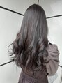暗めの透明感のある寒色系カラーで艶髪に。ゆるめウェーブで仕上げて上品に。