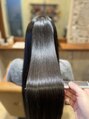 当店でシルクストレートをされたお客様に髪質改善をしたスタイルです。腰近くまで長さがあるお客様で長さをキープしたいので髪質改善によって髪の栄養補給と耐久力を向上させました。独自の髪質改善トリートメントでツヤ感とやわらかな手触りを実現しました。