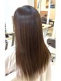 11トーン・ラテブラウンカラーのロングストレート。アイロン仕上げで癖毛を整えて艶のある仕上がりに。