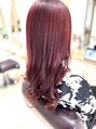 深みのあるレッドカラーで華やかさとモード感を出しました♪動くたびに色味が変化し、大人綺麗なヘアカラーです。