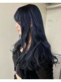 ケアブリーチを使用し、深みのあるブルーブラックに仕上げています。