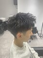 サイドをすっきり短く整え、トップにピンパーマで動きをプラス。根元からふんわり立ち上がる質感で、自然な束感とラフな立体感を演出。セットも簡単で、どんな服装にも合う好印象スタイル。