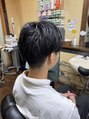 - センターパートにしてツーブロックを入れてバックを刈り上げました