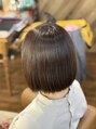 毛先をぱつっとそろえたボブスタイル。まとまりやすくてお手入れも簡単。秋にびったりの落ち着いた色味で大人可愛い雰囲氣に。/美髪改善酸熱トリートメント/グレイカラー/ヘッドスパ