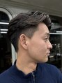 ニュアンスパーマのオールバック風スタイルサイドを下ろすと短めのセンターパートもできます!