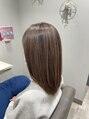 縮毛矯正やカラーを繰り返してるお客様の髪を、質感再整カラーでツヤツヤに!エイジングケアを同時にすることで頭皮も弾力のある状態になっていきます。そうすることで新しく生えてくる髪もしなやかな状態にしていきます。