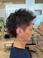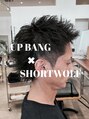 ワイルドな束感とエッジの効いたシルエットが魅力のアップバングウルフショート。サイドはタイトに刈り上げトップからバックにかけてしっかり動きを出しているので、横まで立体的。ワックスやジェルでセットするだけでメリハリのあるフォルムが簡単にキマる!