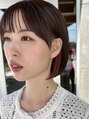コンパクトなボブに、耳もとでさりげなく見えるボルドーピンクのイヤリングカラー。角度によって印象が変わり、上品さの中に遊び心を感じるデザイン。暗髪でも軽やかに見える、秋におすすめのカラーです。